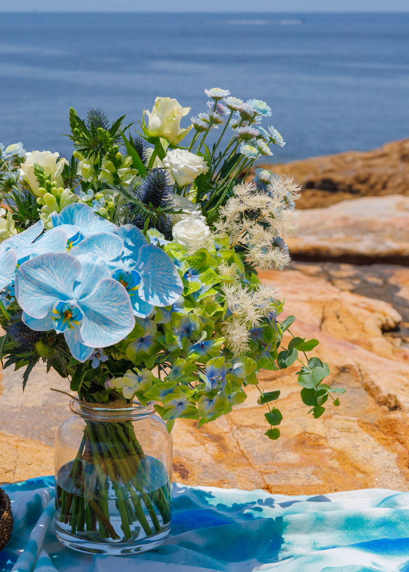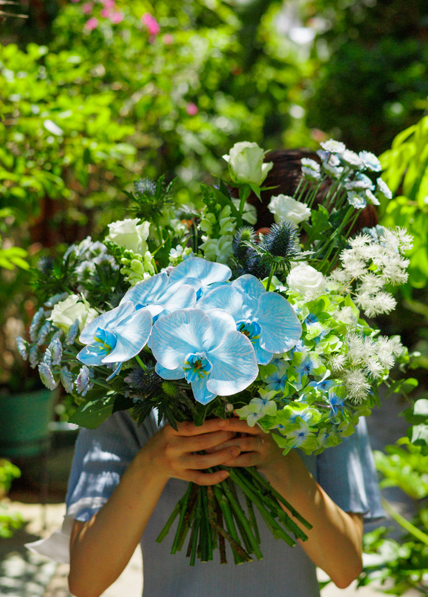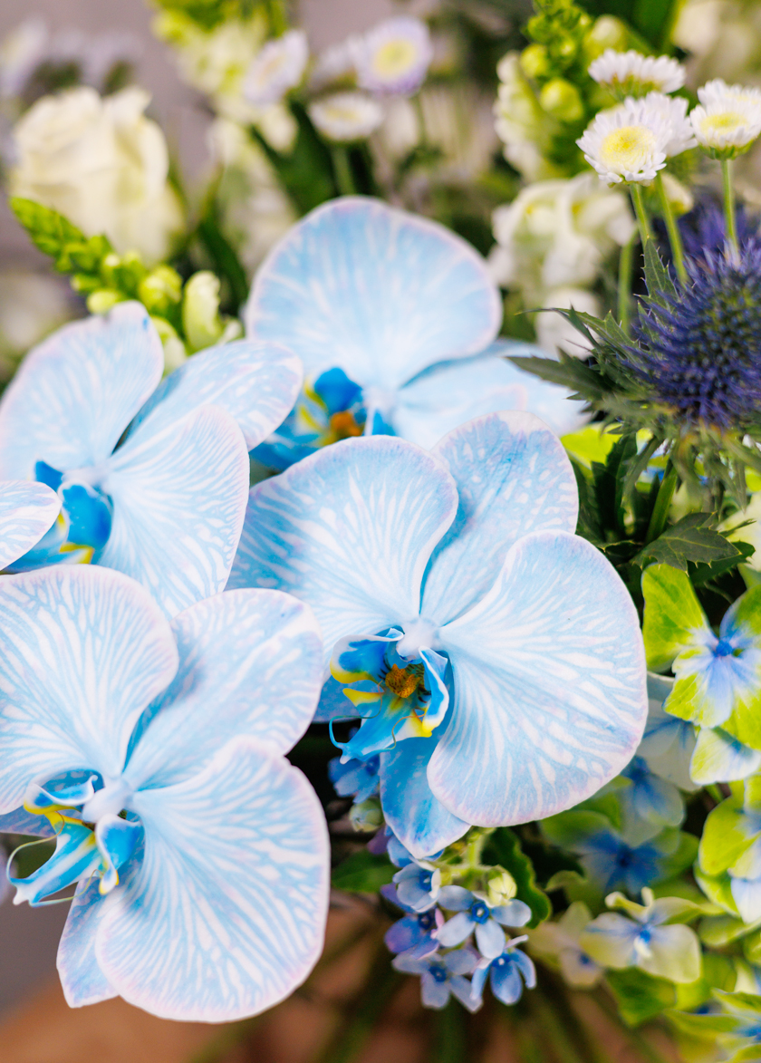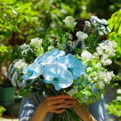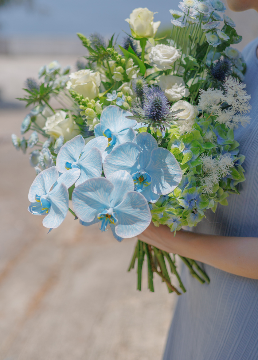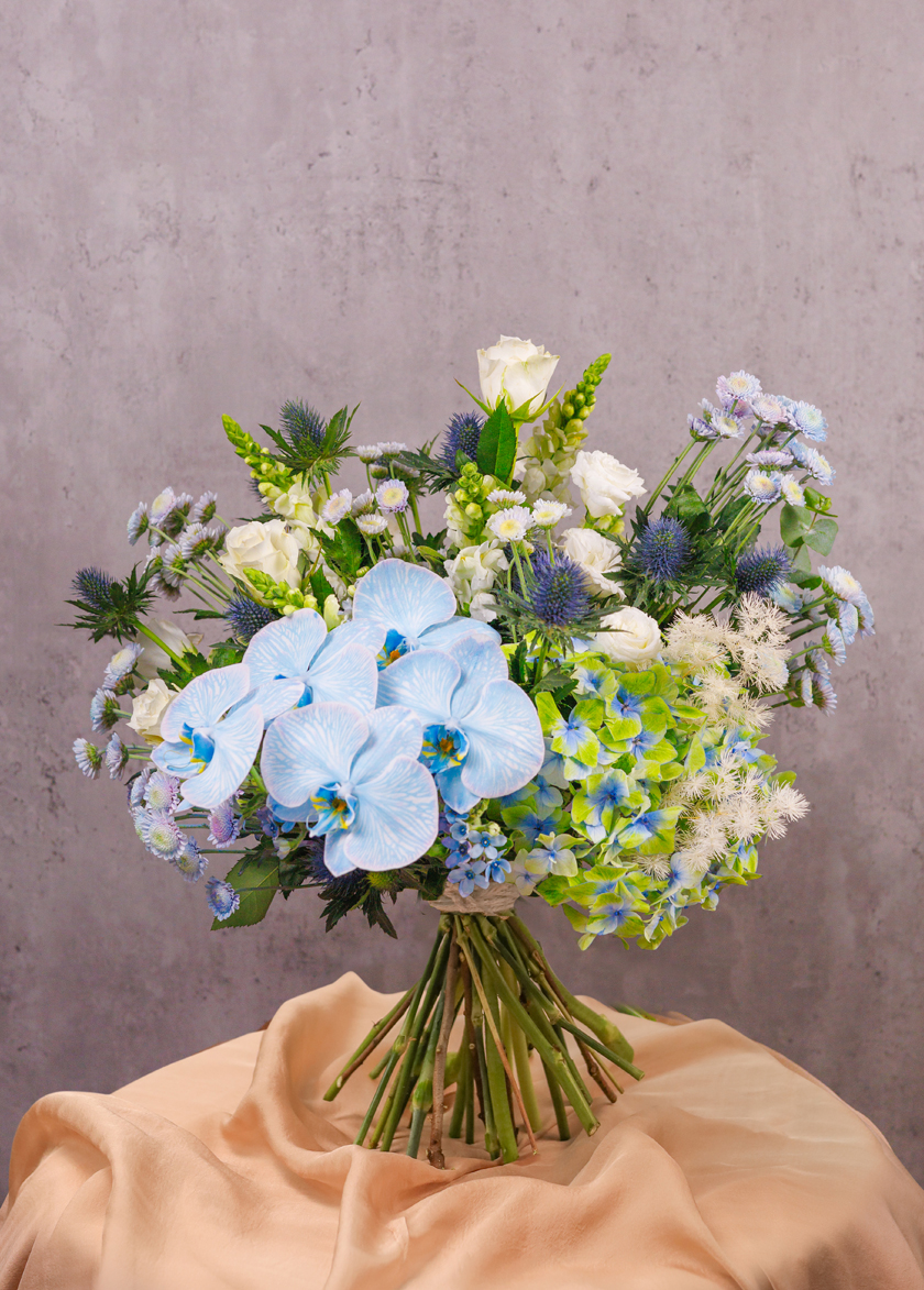 The bouquet palette of Blue, White and soft green,